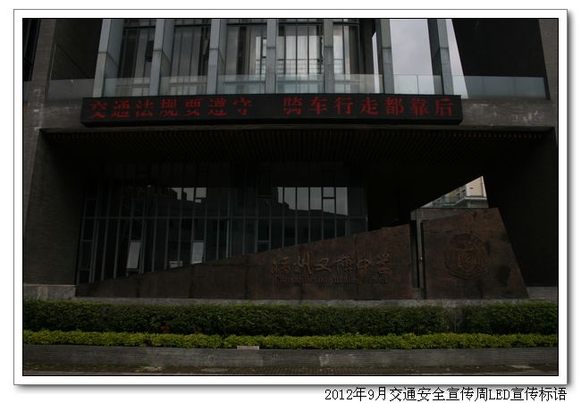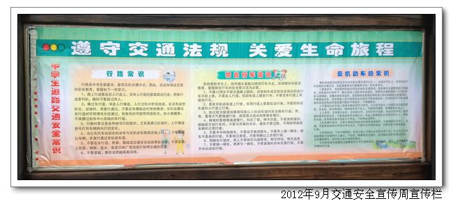 本周是学校的交通安全宣传周,德育处举办了一系列的交通安全知识宣传,通过学生代表倡议、宣传栏、五分钟安全教育、LED循环播放等形式多样的宣传活动使同学们受到了一次深刻的交通安全教育,交通安全意识得到提高。