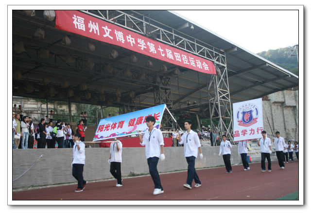 体育赛事的竞争,不仅仅是运动员体能的竞争,更是运动员意志与毅力的较量。运动场上不可能人人都是冠军,只要去拼搏、只要去努力,就无愧于强者的称号。人生的赛场中,没有永远的英雄,也没有永远的弱者,胜利和光荣只属于那些搏击生命的强者。我们相信本届运动会的胜利举办,一定能够使更多的同学了解体育、热爱体育,不仅将推动我校体育事业不断向前蓬勃发展,更能收获我们文博中学学生自强不息,奋勇拚博的精神。