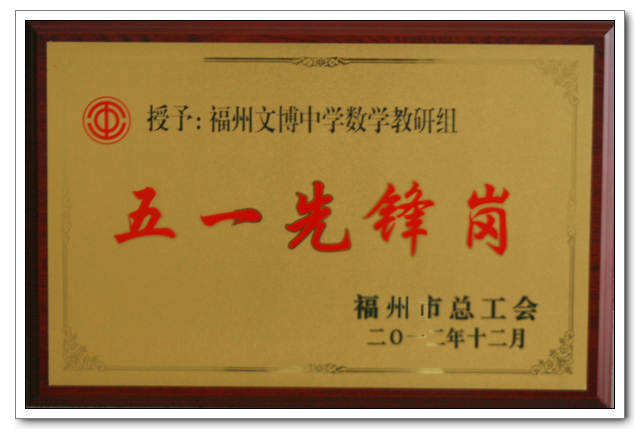 福州市总工会授予我校数学教研组《五一先锋岗》荣誉称号。