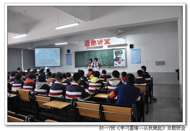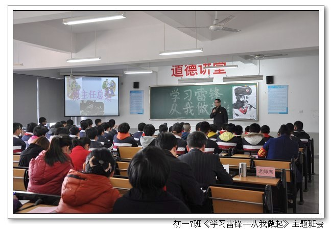 阳春三月是学习雷锋活动月,今年是毛主席题词“向雷锋同志学习”的50周年。3月4日下午,我校组织开展了主题为“学习雷锋”的班会观摩活动。活动由初一7班和高一1班承办(班主任林金土、张从刚老师)。校领导俞继圣校长、朱之琳副校长、周啸翔副校长、林仰仙校长助理、俞丽芳教育督导和全体年段长、班主任参加了活动。
