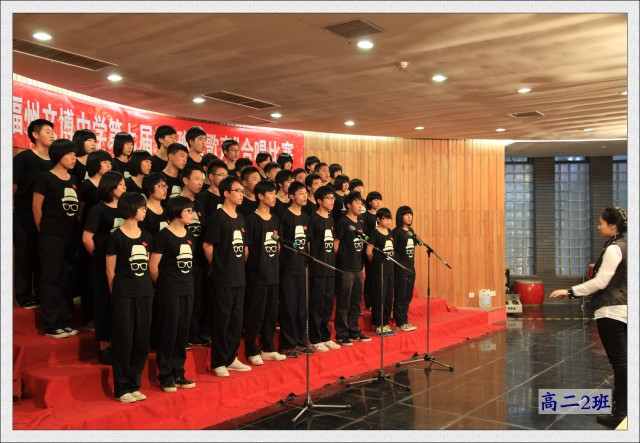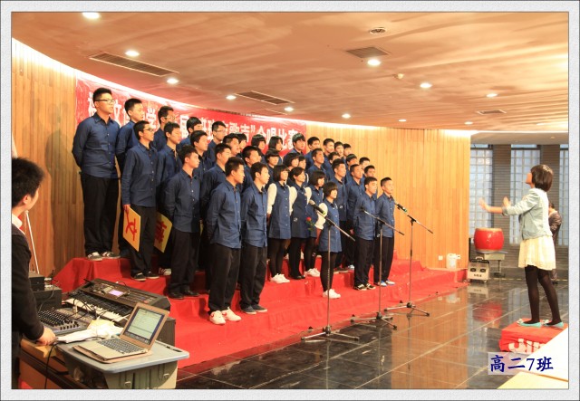 2013328周四下午第三、四节,进取级高二“班班有歌声”合唱比赛在会议中心一楼隆重开幕。现场同学们十分激动个个摩拳擦掌斗志昂扬,大家都期待着比赛的开始。