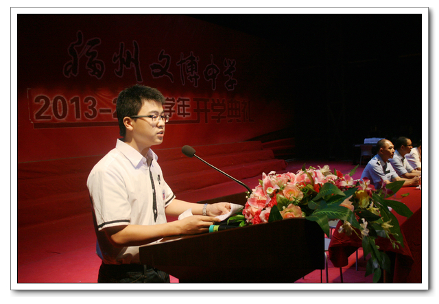 2013届高三林清强同学代表高三毕业生讲话,表达了对母校的感恩之情。2013届初三毕业生代表陈运铎,讲话中表达了对母校的眷恋和对高中学习的期盼。两名同学都共同地对母校新初、高三学子表达了自己的祝福和希望。