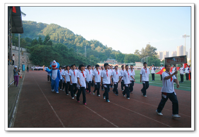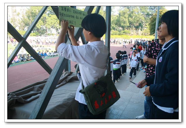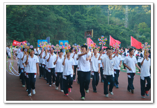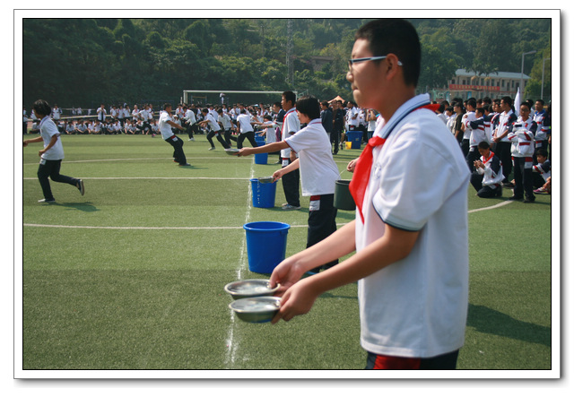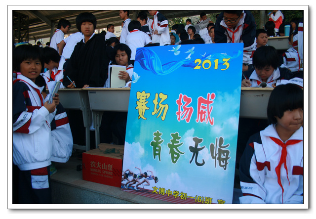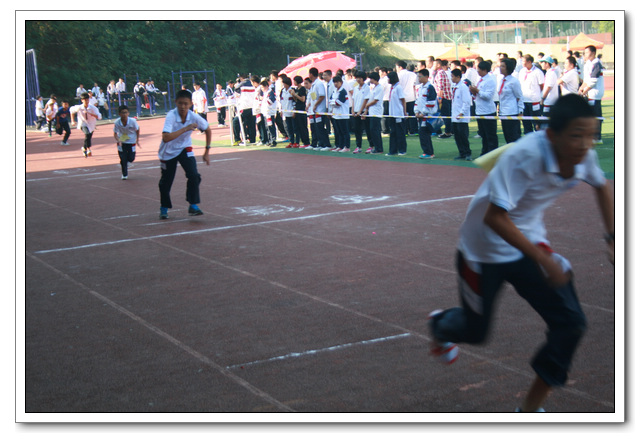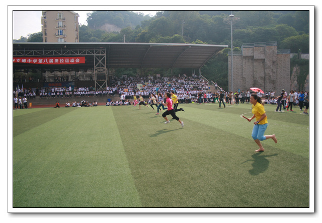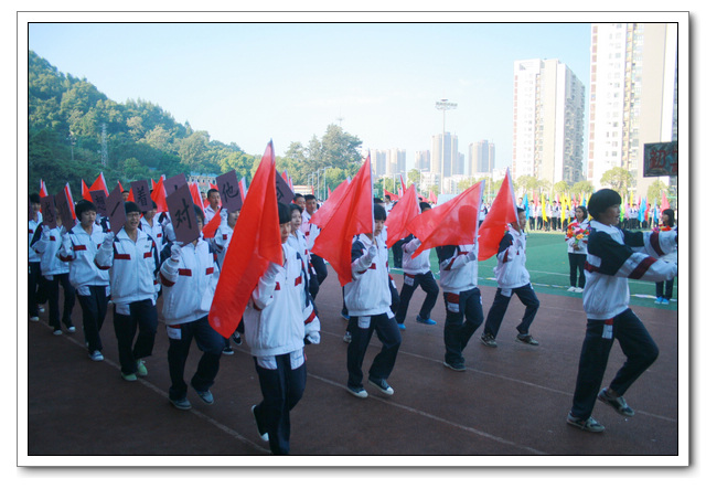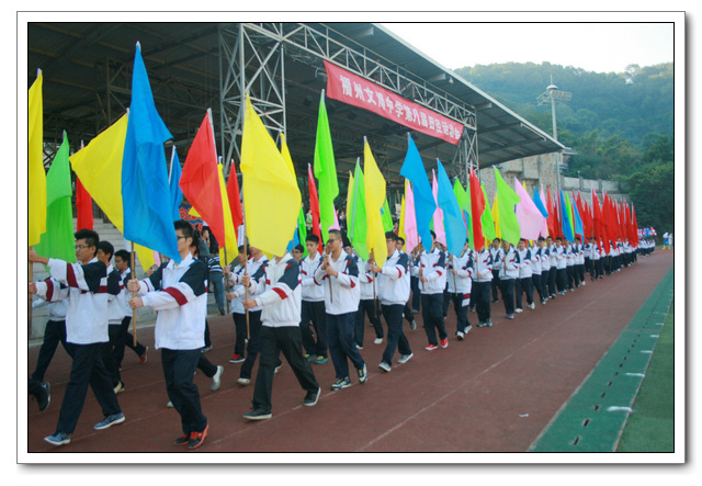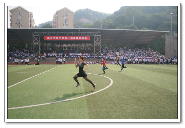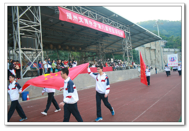 10月24日、25日,我校隆重举办校第八届运动会。本届运动会上,全校师生近4000人次参加比赛, 可以说是一次精彩、成功的盛会。在入场式上,各个年段组织严密,秩序井然。整齐的队列、矫健的步伐、雄壮的口号,充满创意的行进间活动,尽情地挥洒青春和激情;在赛场上,运动健儿龙腾虎跃,顽强拼搏,力争上游,赛出水平,赛出风格,共有16项打破了校运会的记录,令人振奋;在比赛中,裁判员、工作人员公平公正,恪尽职守,严格裁判,保证了大会各赛事的顺利进行;在宣传阵地上,各个班级捷报快递、佳作频传,活跃了赛场氛围,丰富了校园文化。大会宣传组共收到了稿件5049件,是历年来数量较多、质量较好的一次;这里还值得一提的是,许多班级组织同学,穿梭于运动场各个角落,清扫卫生,做好保洁,体现了同学们良好的素质修养。本次运动会充分展示了文博中学素质教育的丰硕成果,充分展示了文博师生朝气蓬勃的精神风貌。