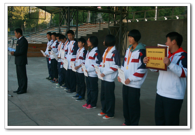 学校体育工作是素质教育的重要组成部分。近年来,我校的体育工作始终坚持“以人为本、健康第一”的指导思想,通过丰富多彩、形式多样的学校基础体育教育,学生的健康素质和综合素质得到了明显提高,学校体育工作取得了长足的发展。在本届全市中小学生运动会上,我校派出由二十一名学生和数位教师组成的代表队参加比赛,参赛选手扎实训练、奋勇拼搏,在赛场上龙腾虎跃,以总分56分的成绩位列全市第七名,并被大会组委会授予“体育道德风尚奖”。