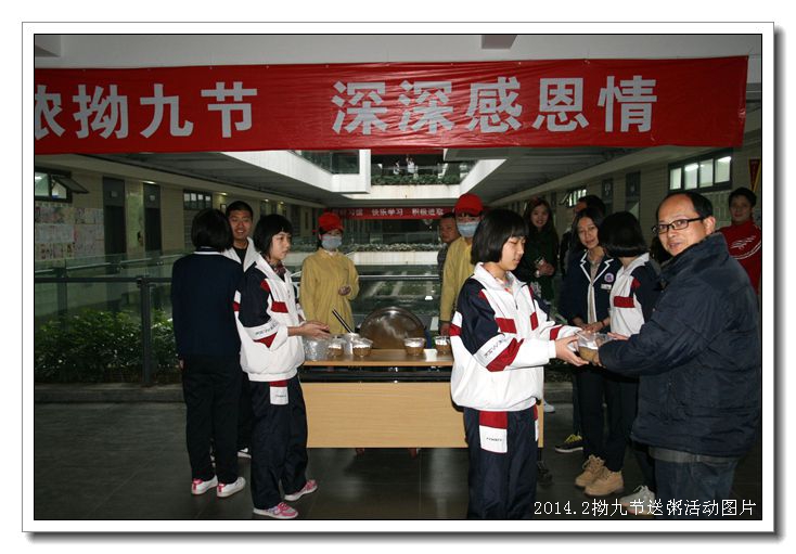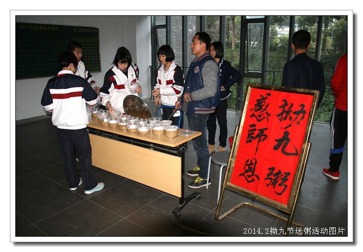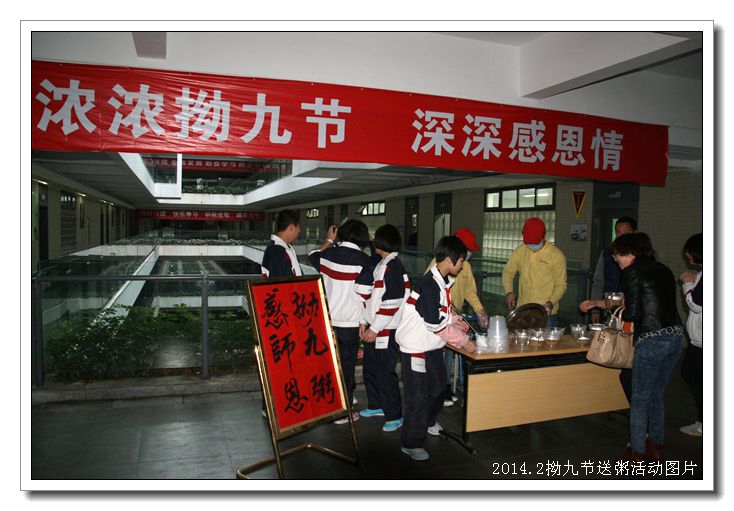 2月28日,团委学生会、生管组老师、校学生志愿者及食堂工作人员给全体老师们送上了一份浓浓的拗九粥。