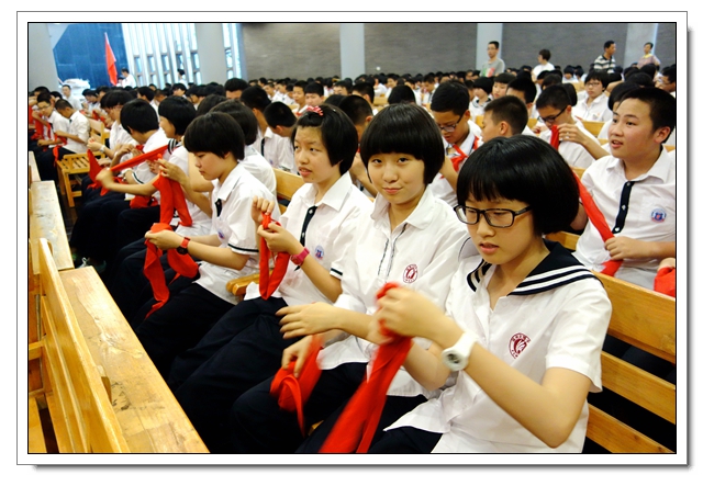 5月27日下午,初二年段全体同学集中在校会议中心,隆重召开 “感恩·成长·责任”初二年段少先队退队暨新团员入团仪式。活动中伴随着少先队呼号声同学们将伴随了多年的红领巾纷纷摘下,这标志着他们已不再是稚嫩的孩童,他们已经由稚气未脱的雏鹰成长成了展翅高飞的雄鹰!接下来团委陈锦霞老师带领62位新团员在团旗下进行了庄严的的入团宣誓!活动最后朱副校长发表总结讲话,激励孩子们要发奋图强,懂得感恩。