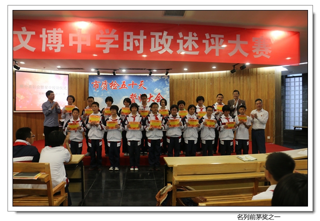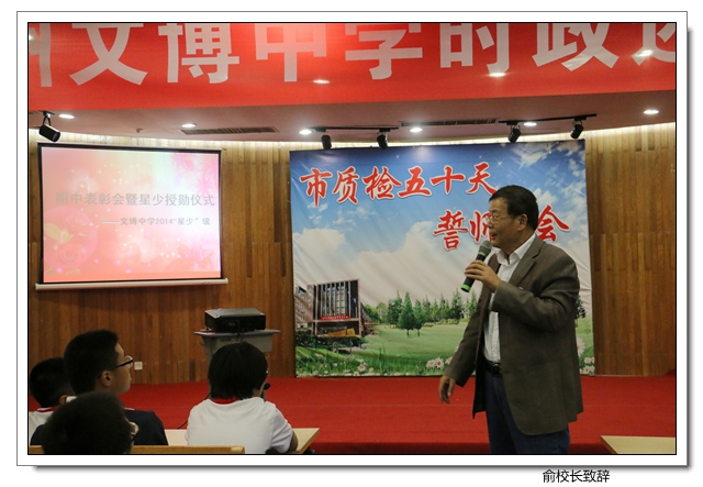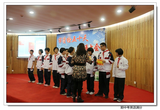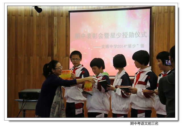 2014年11月24日,初一年段在会议中心一楼,召开期中考表彰大会及“四星级星少”授勋仪式,整个过程隆重而热烈。俞校长,周校长,教务处余光亮主任、吴勉玉副主任,德育处林叔飚主任,事务处杨为劭主任全程参与,为获奖学生颁奖。