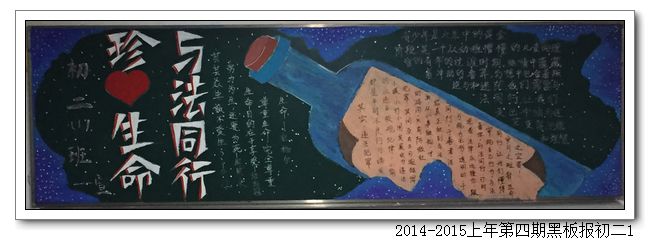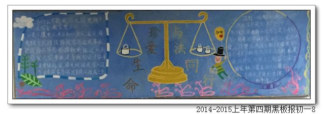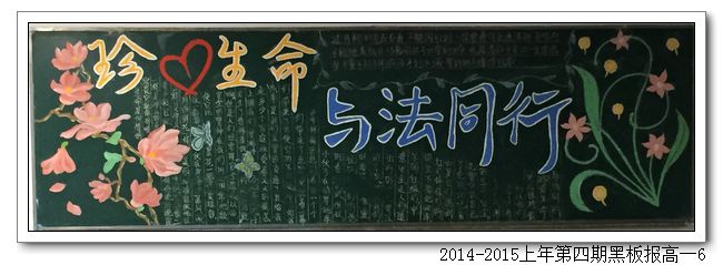 四、2014-2015学年上学期第四期黑板报《珍爱生命,与法同行》优秀板报: