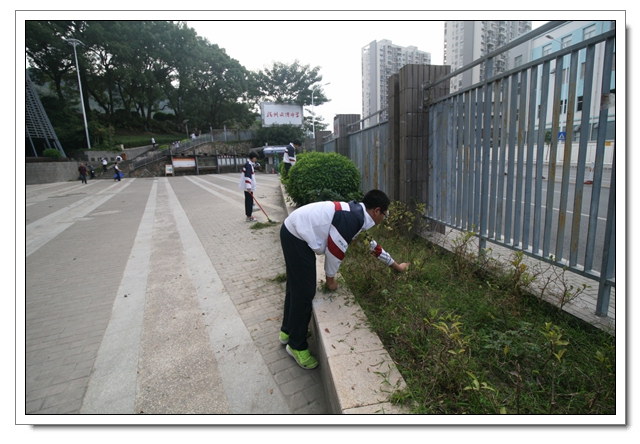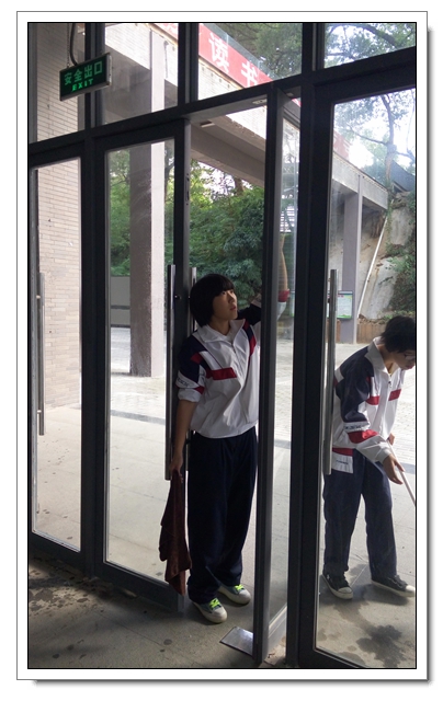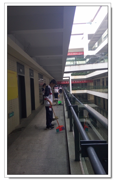 第三,各班在实践活动前由班主任明确实践范围,宏观分组,强调注意事项;而后由组长带领每小组成员去包干区域,紧接着由小组长分配任务,各小组成员分工合作,有的清理天花板,有的擦洗楼梯、墙体及玻璃,有的剔除地面口香糖,有的清除杂草、杂物……每个同学都以万分饱满的姿态、积极认真参与到实践活动当中。同学们团结协作,不怕苦不怕累,所到之处的面貌焕然一新。最后,同学们在收获劳动的快乐中做好收尾工作并由各班班主任在班级教室集中进行汇报总结。