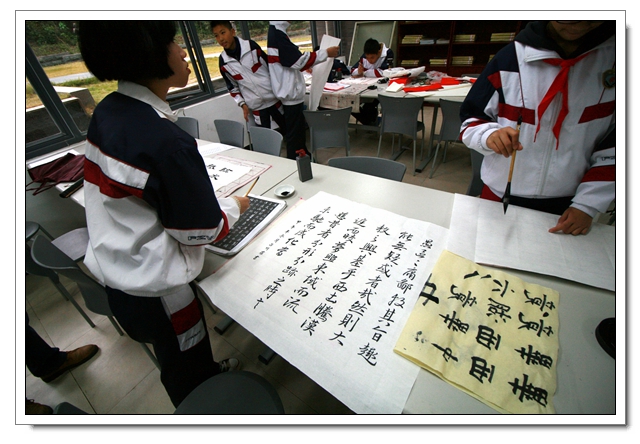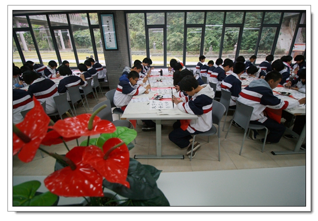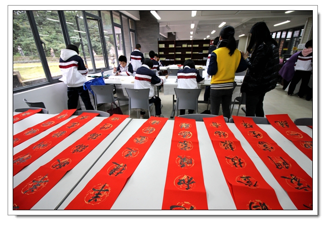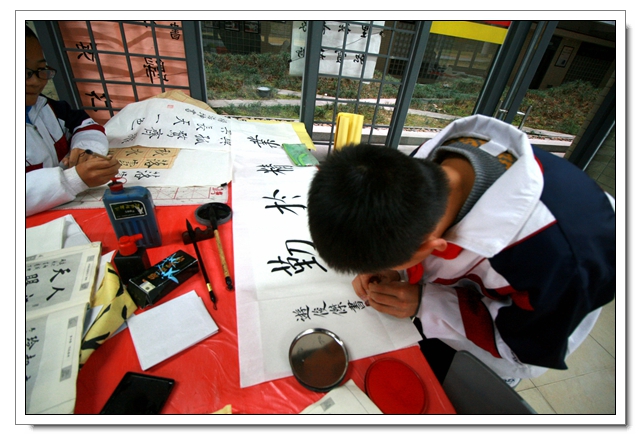 2014年12月26日下午,我校迎新春现场书法比赛暨文体四会书法考核在一楼阅览室隆重举行,本次活动有初二年级100人参加了文体四会的书法表演,30人参加了现场书法比赛,场面隆重而有序,初二的同学展示了这半学期以来的书法教学成果,参赛的同学表现了自己最高的水平,比赛结束同学们又踊跃地参加了写春联迎新春的活动,本次活动取得了圆满的成功,特别感谢学校领导的支持和各位老师同学的参与。