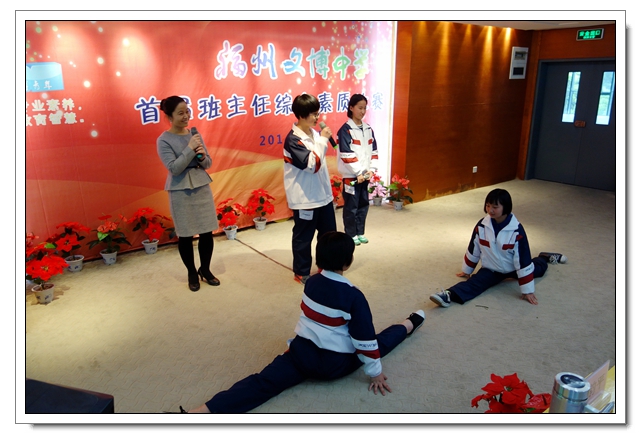 自2014年12月1日下午班主任例会的参赛报名动员开始,至2015年3月23日下午举办的“才艺展示”比赛活动结束,历时近四个月,有20位班主任或年段长参加了以“展现专业素养,演绎教育智慧”为主题的“福州文博中学首届班主任素质大赛”,终于落下帷幕,圆满完成各项赛事。