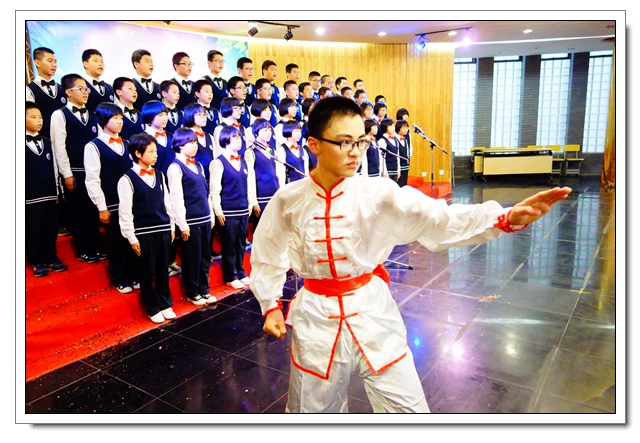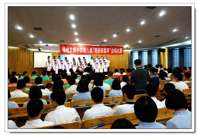 四个年段必唱曲目分别是《中学时代》、《共青团员之歌》、《光荣与梦想》、《中国军魂》。各班在动作编排、服装设计、歌曲演唱方面都很用心,给人以视觉和听觉的享受。值得一提的是,李芸芸、龙连城、陈晓宁三位老师与同学们同台演唱。高一2班的同学们借一首《父亲》向班主任谢成鋆表达了谢意,并敬谢了鲜花。美妙的音符承载着学子们的梦想,回荡在会议中心,也暖暖地流进你我的心中。