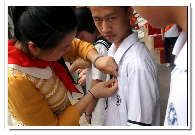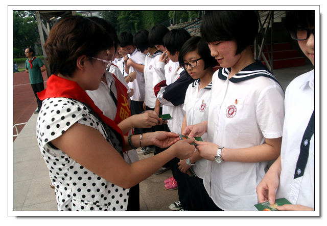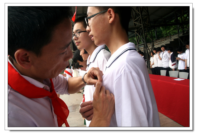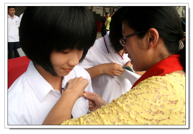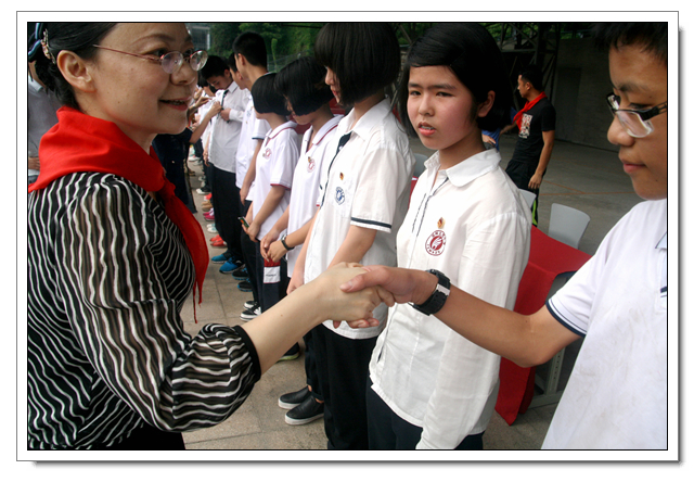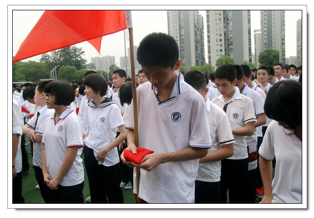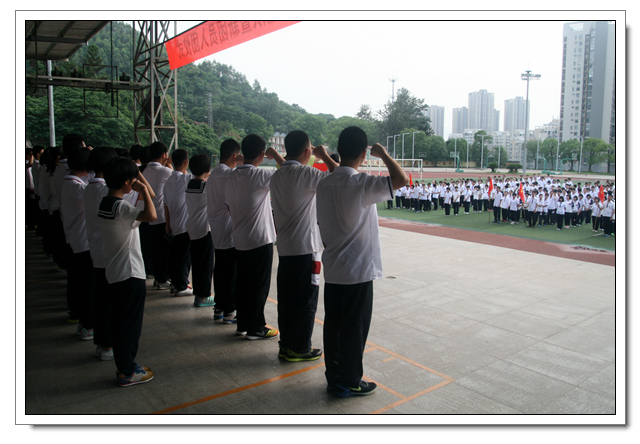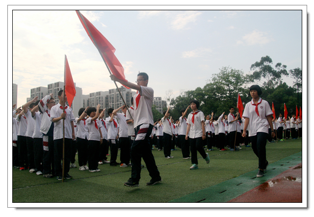 528下午,初二年段全体少先队员在操场集合,隆重召开“感恩·成长·责任” 初二年段举行少先队退队暨新团员入团仪式。大家唱队歌,敬队礼,庄严地在国旗下摘下陪伴自己多年的红领巾,这意味着他们真的长大了。从此,他们更懂得担当,更有责任感,他们将像雄鹰一样飞向更高更蓝的天空。随后在团委陈锦霞老师的带领下,50位新团员在团旗下庄严宣誓。至此他们成为真正的青年。活动中周副校长对“感恩、成长、责任”作重要讲话,激励同学们要发奋图强,努力学习,懂得感恩。