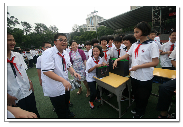61日下午,初一年段在校团委少先队和年段的组织下,在操场隆重召开了“红领巾相约青运梦”庆六一的主题队会活动。队会分为新团员入团宣誓和迎青运游园活动两个环节,俞校长、周副校长以及各处室领导,年段老师们参加了队会。年段长宋宏伟老师宣布了初一第一批26名新入团名单,少先队总辅导员陈锦霞老师带领他们在团旗下庄严宣誓。最后俞校长对初一年段所有少先队员致以节日的问候,并对初一年段的同学们提出了殷切期望,希望同学们:加强表达能力、交往能力、劳动能力并且主动参与各项活动,发现自己的潜能,今后走上社会能成为社会栋梁。