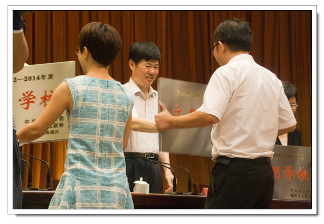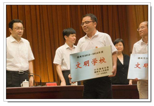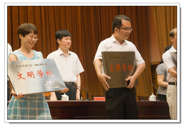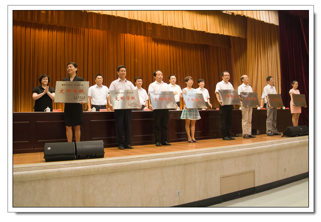 我校作为文明学校代表出席表彰大会并接受市领导授予“文明学校”牌匾。