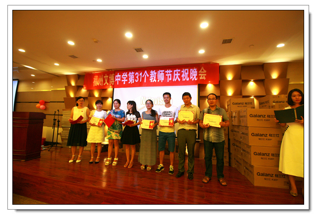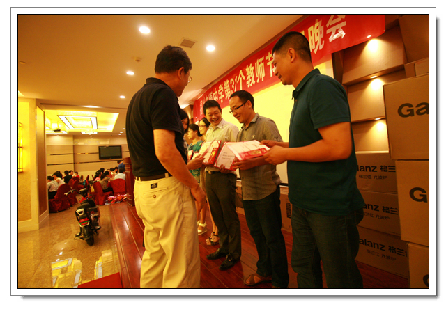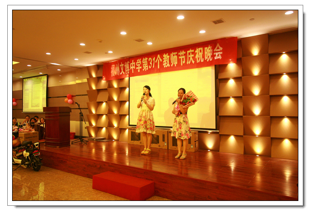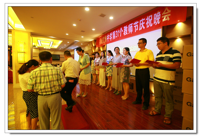 9月11日晚,我校庆祝第三十一个教师节联欢晚会在榕轩酒店宴会厅隆重举行。晚会上进行了颁奖典礼、师徒签字仪式和联欢晚宴等活动。