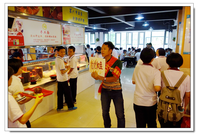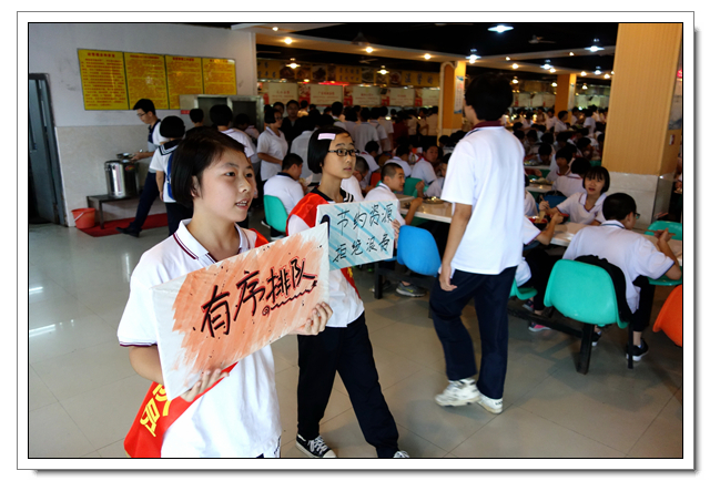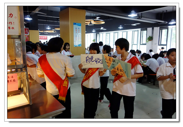 9月17日-9月18日,一场关于文明就餐的劝导活动在文博中学如火如荼地进行着。在校团委的组织下,我校学生会及团委组织部成员担任督导工作人员,佩戴督导绶带及工作证,携带写有“自觉排队”、“珍惜粮食”、“自觉回收餐盘”等字样的宣传牌在食堂进行劝导,提醒就餐师生文明就餐。我们从小就习得“谁知盘中餐,粒粒皆辛苦”的道理,积极养成珍惜粮食的行为习惯。除此之外,在文明就餐的过程中,我们还应该养成自觉遵守纪律,有序排队买饭,做到不拥挤、不插队;同时,珍惜粮食,吃多少打多少,力争做一名“光盘族”;最后,为了保障食堂的卫生与整洁,每位同学应自觉回收餐盘。文明就餐礼仪与每一位文博人都息息相关,为了构建更加和谐的校园就餐文化,我们都应该规范自己的行为习惯,争取做一名文明的文博人!