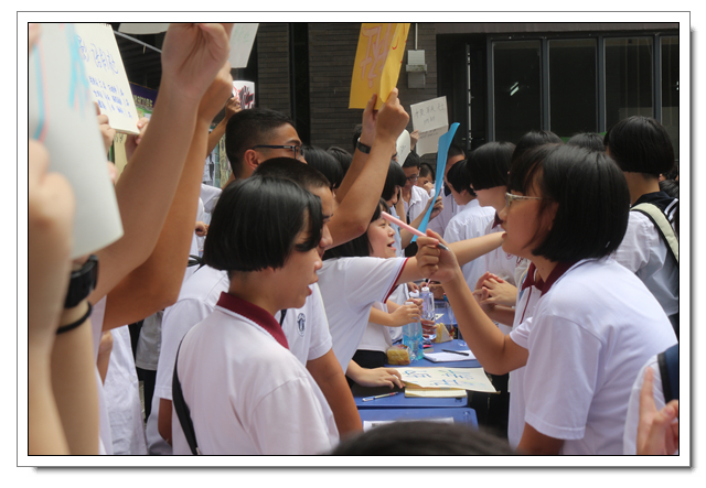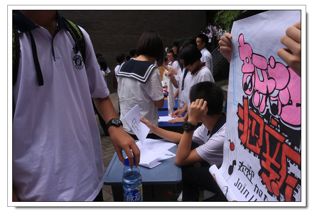 9月8-9日中午,在校团委、社团部联合指导下,福州文博中学17个社团在食堂门口进行了为期两天的纳新活动。