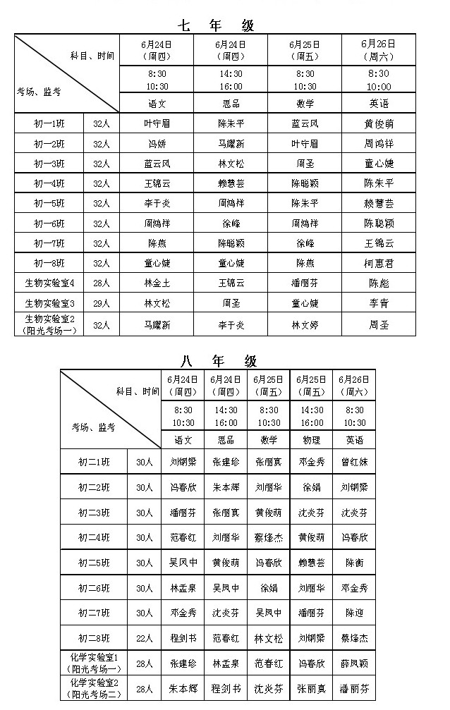 2009-2010学年下学期第18周初中期末考监考安排